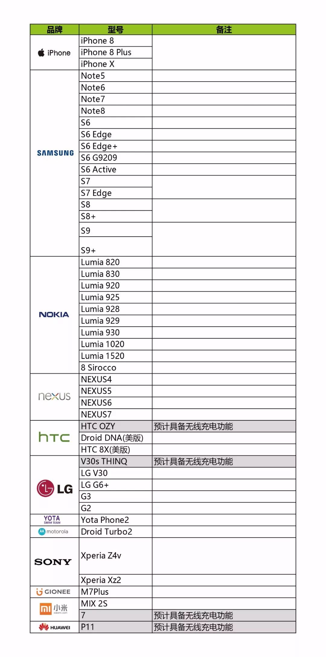 自带无线充电功能手机型号